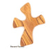 Crafted from natural, authentic olive wood, each cross measures 5” x 3.5” x 0.5”, designed to fit perfectly in your hand for intimate prayer experiences.