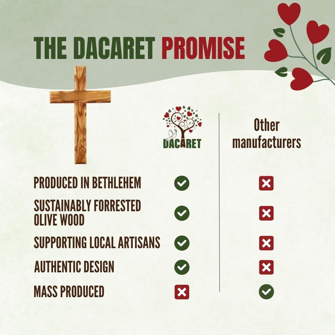 Hand carved olive wood Cross made in Bethlehem, Holy Land. Plain Simple, Traditional Cross with the 14th Stations Laser burned on the BACK. Crucifix Dimensions: 6.25'' x 4'' x 0.6''. What is more blessing than a gift from the Holy Land to yourself, Family and Friends. Those Crosses can be hanged in the Living room, Dining room, kitchen, Office and Children Rooms. Cross gift for Easter, Wedding, Baptism, Confirmation, First Communion, Christmas and much more. Each Cross has it's own unique grains and special amazing edge design that's makes it so special and one of a kind.