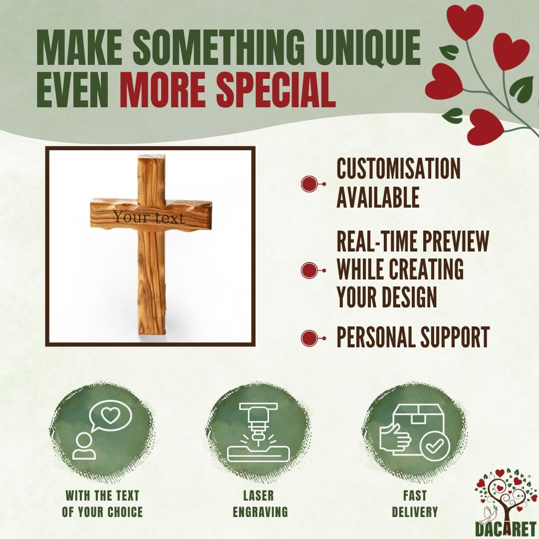 Wall Cross, Crosses from Bethlehem, 10'' - 25CM, Holy Land. Olive Wood Crucifix. Hanging Home Decor. Gift for Godparents, Grandchildren, New House, Christmas or Easter